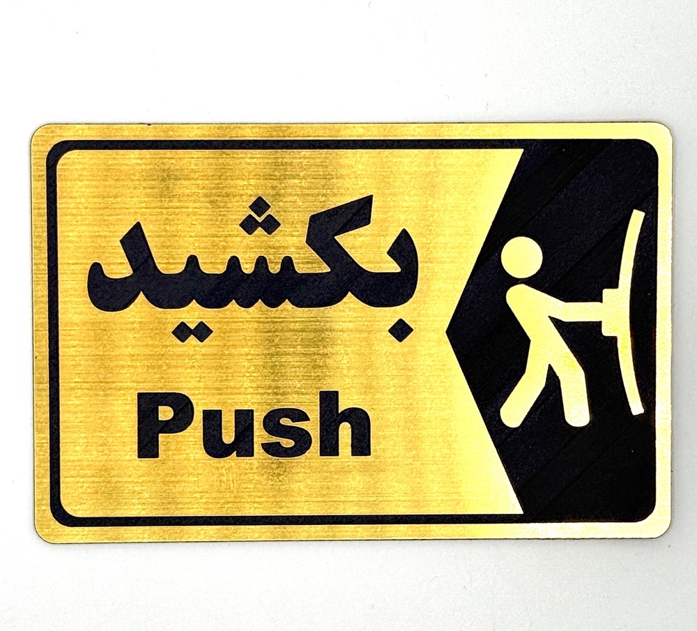 نوشته بر روی تابلو بکشید می باشد که هنگامی که فردی این تابلو را مشاهده می کند بدین معنی است که برای عبور از درب باید آن را به سمت عقب بکشد.