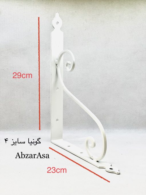 گونیا طبقه فرفورژه سفید محصولی است قابل استفاده برای تولید یک طبقه زیبا در منزل و دکوراسیون شما باکیفیت بالا در ابعاد و سایز های مختلف موجود و در دو رنگ سفید و مشکی در ابزار اسا قابل دسترس شما عزیزان می باشد ابعاد گونیا 4سفید فرفورژه 28/5*22/5*3 سانتی متر می باشد